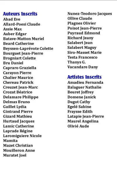 12h – Inauguration de la Fête et Vin d’honneur. Remise des 1er et 2ème prix du Concours de nouvelles organisé par l’Amicale des écrivains régionaux (ADER) en présence des élus.