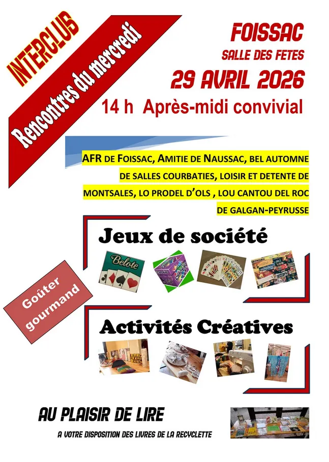 Après-midi convivial avec : AFR Foissac, Amitié de Naussac, Bel Automne de Salles Courbaties, Loisir et Détente de Montsales, Lo Prodel d’Ols, Lou Cantou del Roc de Galgan – Peyrusse.