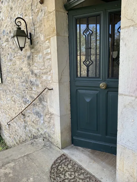 L’ensemble s’ouvre côté cour et donne accès de plain pied à un vaste espace engazonné et clôturé ainsi qu’une remise ombragée, permettant à des enfants ou des animaux de compagnie de gambader en sécurité.