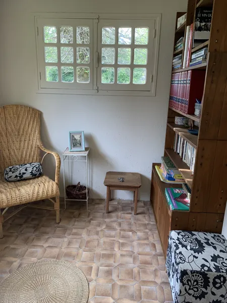 Cette maison offre 5 pièces lumineuses et confortables : cuisine ouverte et équipée, salon avec canapé convertible et télévision, 2 chambres spacieuses (1 lit double et 2 lits simples), une loggia aménagée en coin bibliothèque, un parking privé.