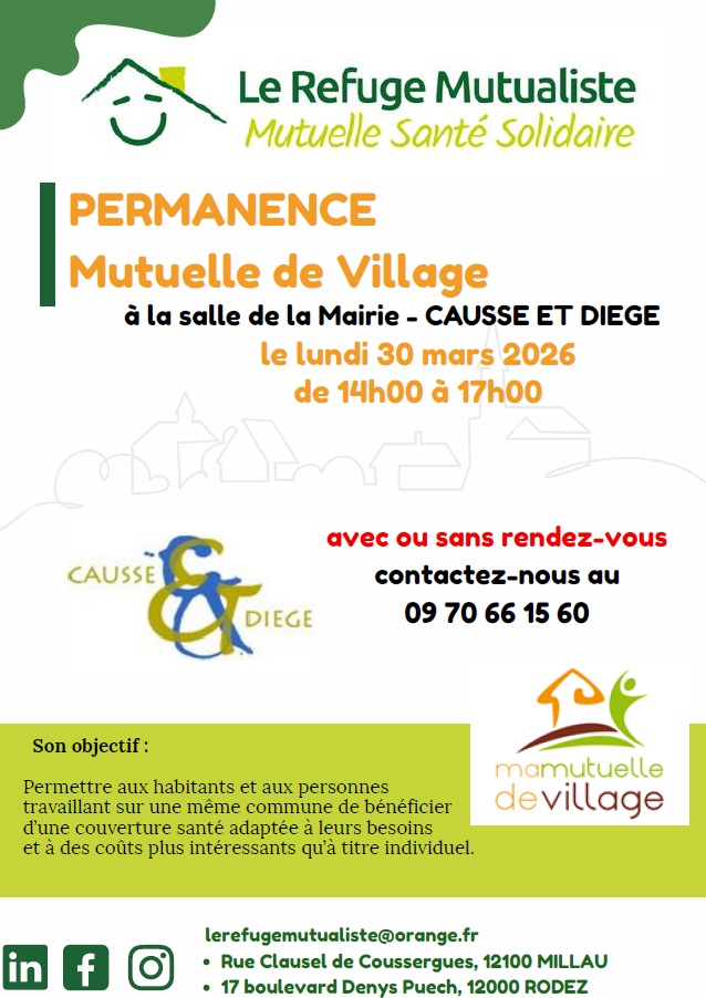 Mairie de Causse et Diège le lundi 30 mars de 14h00 à 17h00.