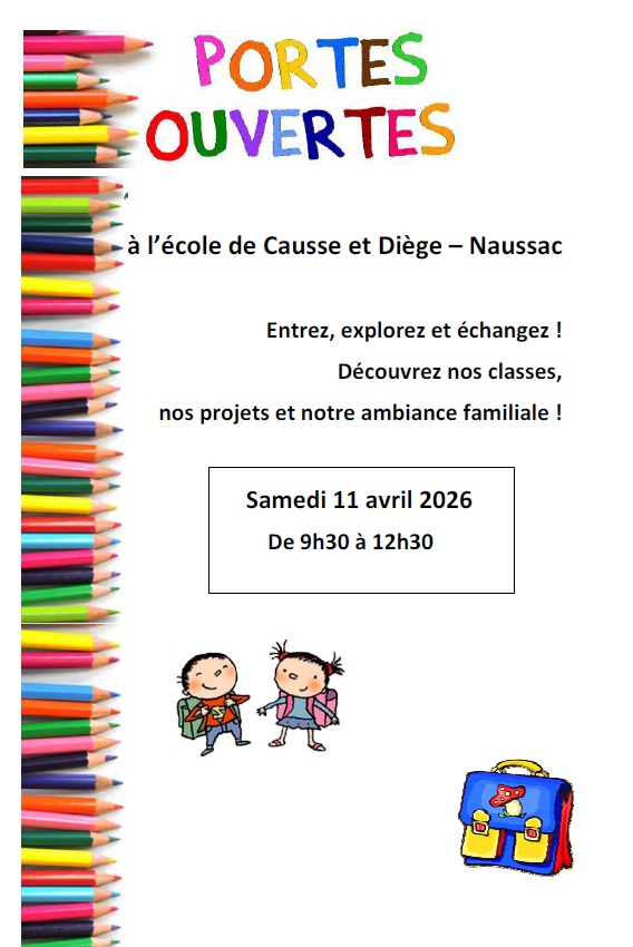 Les portes ouvertes de l’école de Causse-et-Diège auront lieu le samedi 11 avril 2026 de 9h30 à 12h30.